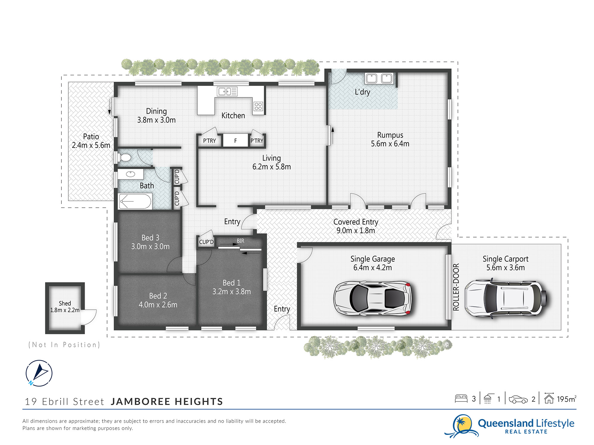 | 3 Beds | 1 Bath | Approx 662 Square metres | 2 car spaces |